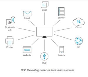 The DLP term refers to defending organizations against both data loss and data leakage prevention. Data loss refers to an event in which important data is lost to the enterprise, such as in a ransomware attack. Data loss prevention focuses on preventing illicit transfer of data outside organizational boundaries.